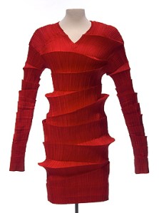 Issey Miyake- my favorite designer of the exhibition pieces. He is known for his pleating, which is is evident in 80% of the pieces. the pleating is intense, giving may garments a crinkly look. The garments produce a sculpted look, truly an artist of the fashion world. An interesting aspect of his garments is that they do not waste any fabric. The epitome of green production.