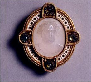 One of the most well known designers in the 19th century was Fortunato Pio Castellani, and italian jeweler in Rome.  His designs were inspired by ancient craftsman, most often Etruscan metalworkers.  His studio became a go-to spot for visitors to the city.  During the 19th century there was a rise in antique style jewelry along with those that were societally and culturally specific.  As an anthropologist, I remember that this was a time when the strange and unknown was at the height of people’s interests.  It is not so far of a stretch to think that jewelry that was foreign or exotic would catch the eyes of nobles as well.