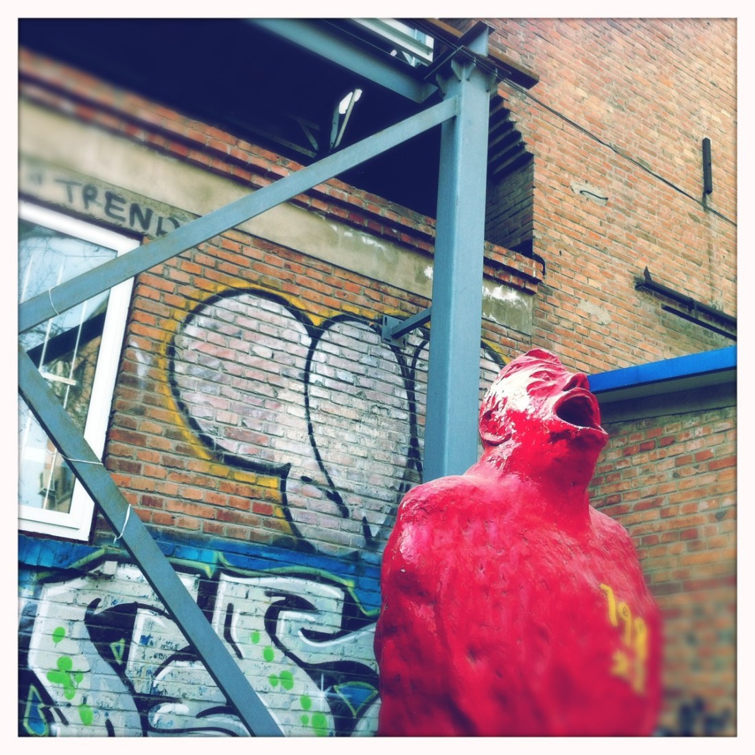 Saturday we headed to the 798 (seven, nine, eight) District. This little area is packed full of galleries both big and small. The galleries reside in the old factory warehouses, the buildings are sturdy and meant to outlast the elements. The area is named for the biggest of the warehouses which was coded 798. ‘7’ the code for electronics and ’89’ the specific building number. The whole area retained this description and is now known as the 7-9-8 Disctrict.