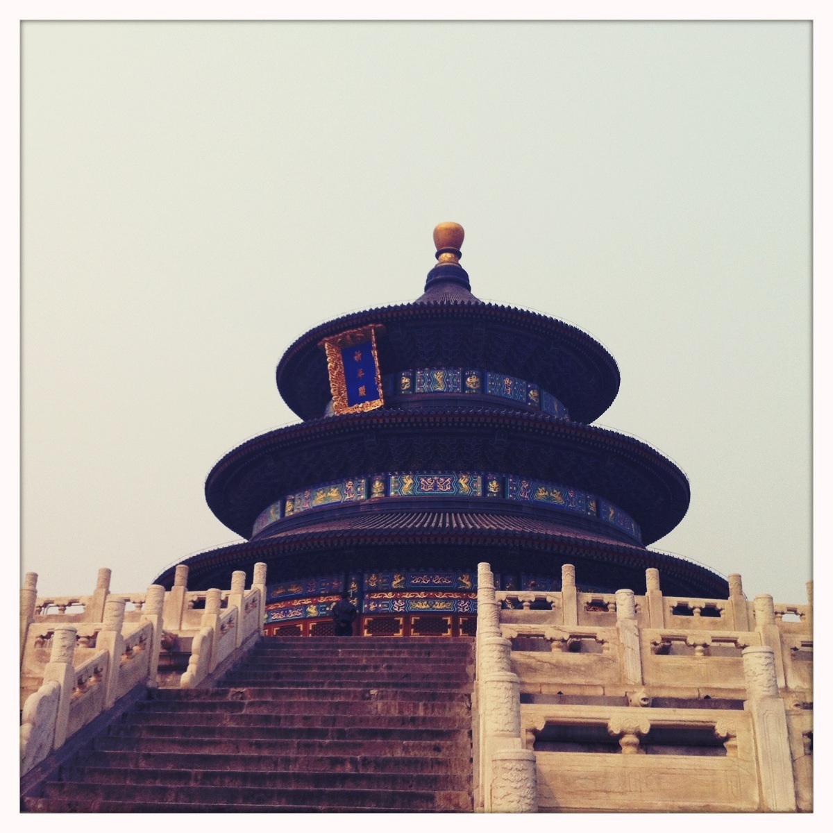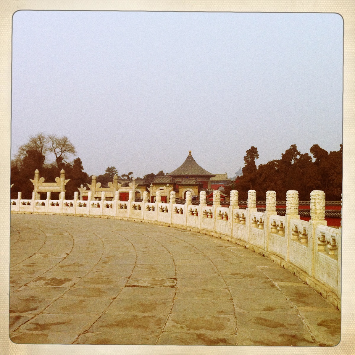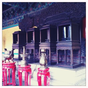 so after a third trip to Shard Box (quickly becoming my favorite little shop to visit ) and a quick run into the pearl shop I was ready to see some more of what Beijing had to offer. Enter TianTan or The Temple of Heaven, used by the emperors of China in annual ceremonies to the heavens for a good harvest. The complex is quite large, our driver dropped me off at the South Gate and picked my up at the East Gate, I spent almost an hour wandering around the southern and eastern sections. TianTan is on UNESCO’s list of World Heritage sites, a title well deserved and much more probable than the Ming Tombs claim to also being a World Heritage site. The Hall of Prayer for Good Harvests sits at the very center of the complex, a beautiful, colorful circular building.
