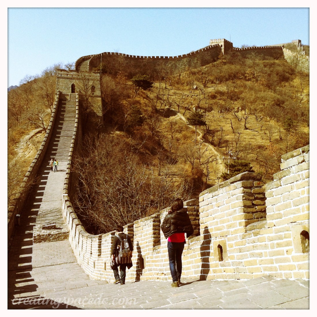 It was an absolutely beautiful day on The Great Wall. We walked a little ways, not as far as the first time, but enough. Took some great photos from the tower. and the one below, a rare phtoto of your’s truly.